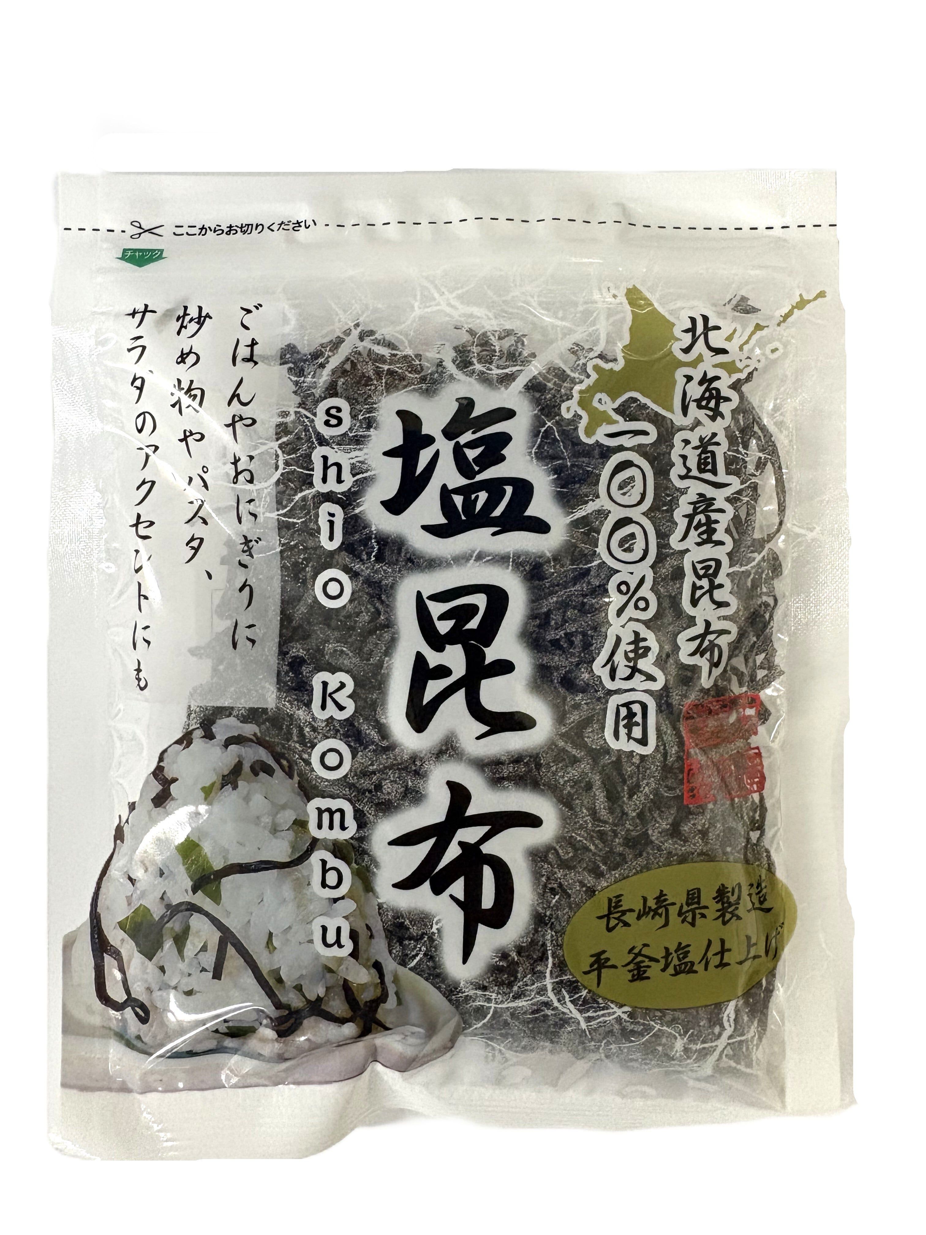 北海道産昆布の旨みを生かし、長崎県製造の平釜塩でまろやかに仕上げた塩昆布です。