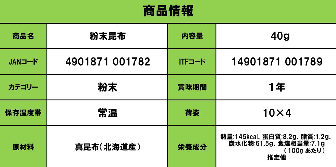 北海道産昆布を微粉末状にした「粉末昆布」です。